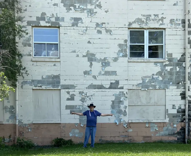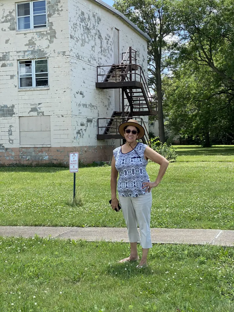 Alice outside the dorm I lived in for 9 months. I was on the first floor about 30 feet to the left of the edge of the photo. Illinois plans on demolishing this group of dorms as soon as funding is available; most likely before the end of 2021.