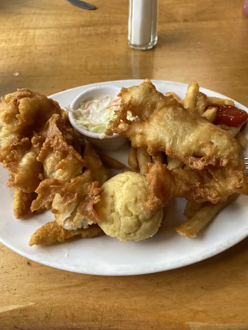 Found a seafood place for lunch. I was not expecting much but it was surprisingly good! We both got fish and chips and I added some clam strips.